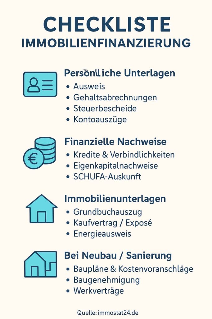Ein Gedanke zu „✅ Checkliste: Welche Unterlagen brauche ich für die Immobilienfinanzierung?“