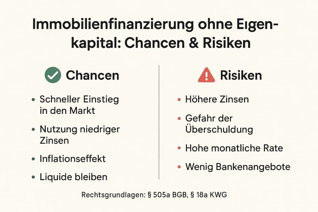 Eine Immobilienfinanzierung ohne Eigenkapital kann eine Chance sein, frühzeitig in den Markt einzusteigen und Vermögen aufzubauen. Gleichzeitig birgt sie jedoch erhebliche Risiken: hohe Zinsen, starke Verschuldung und Gefahr einer Restschuld bei Verkauf.